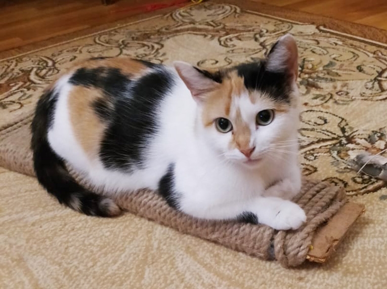 Кошечка 1.5 года, трёхцветная, домашняя, к лотку приучена, с другими животными ладит, игривая, общительная, к лотку приучена. Ищет семью. Звонить по телефонам.